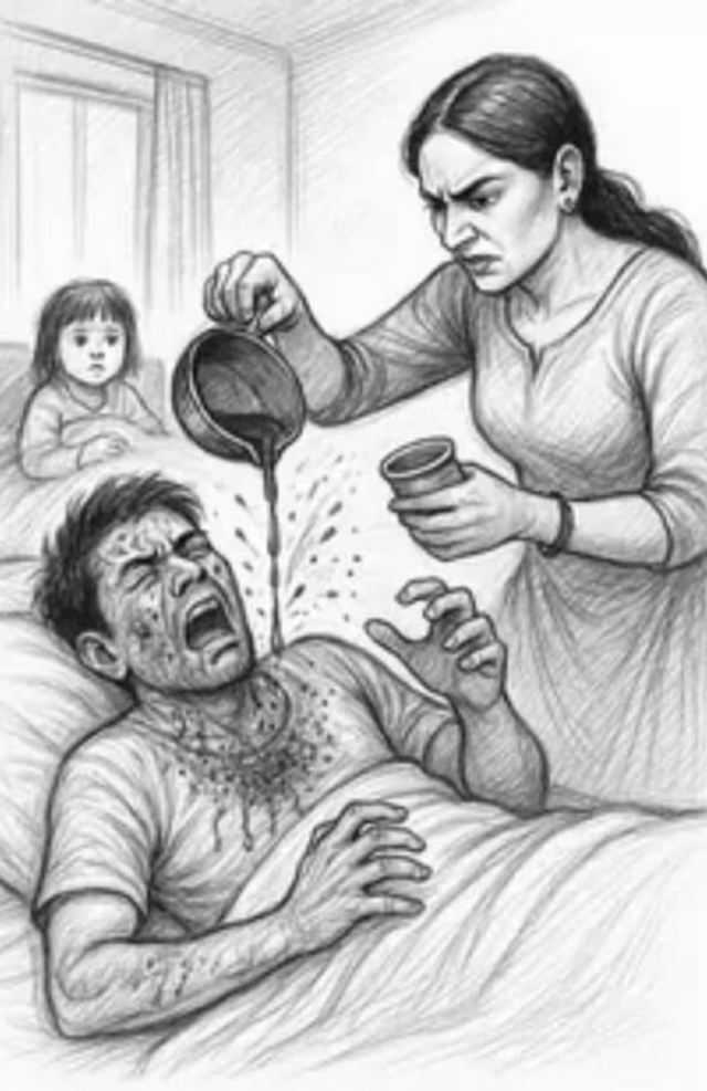 Olay, gece saatlerinde çiftin evinde yaşandı. İlaç sektöründe çalışan 28 yaşındaki Dinesh Kumar, uykusunda göğsünde ve yüzünde ani bir yanma hissiyle uyandı. Gözlerini açtığında eşi başında duruyordu ve elindeki kaptan üzerine kızgın yağ dökmüştü. Genç adam bağırmaya çalıştığında ise eşi tarafından “Çığlık atarsan daha fazla dökerim” şeklinde tehdit edildi.